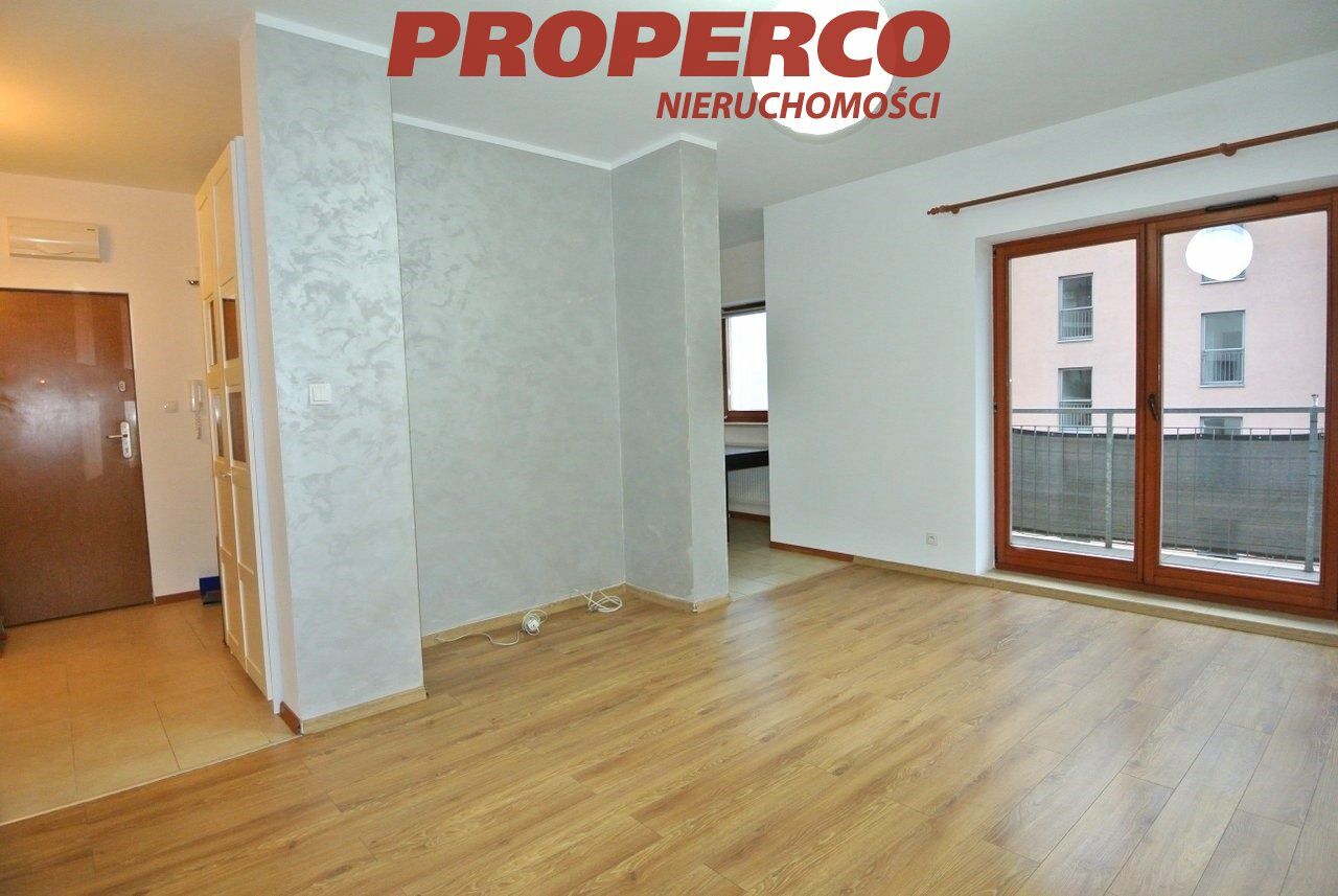 Pomieszczenia: salon z aneksem kuchennym, sypialnia, łazienka z WC, przedpokój, balkon.